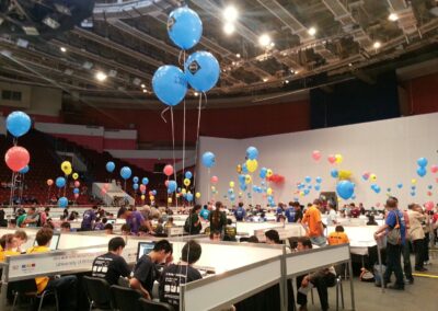 Balloons are taking over the Jubilee main floor. Teams are solving problems one after the other to collect their rainbow of rewards.