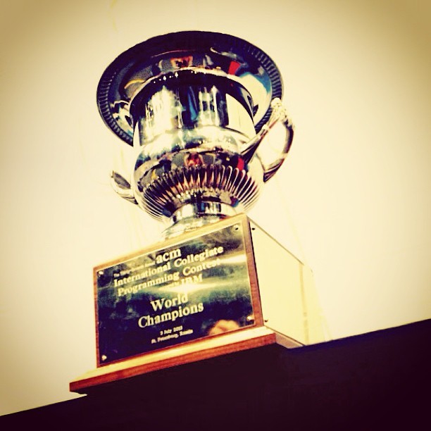 There it is! The 2013 World Finals trophy is now sitting in the contest floor at the Jubilee Sports Palace. (at Jubilee Sports Palace – St. Petersburg)
