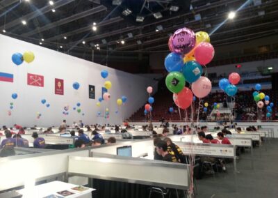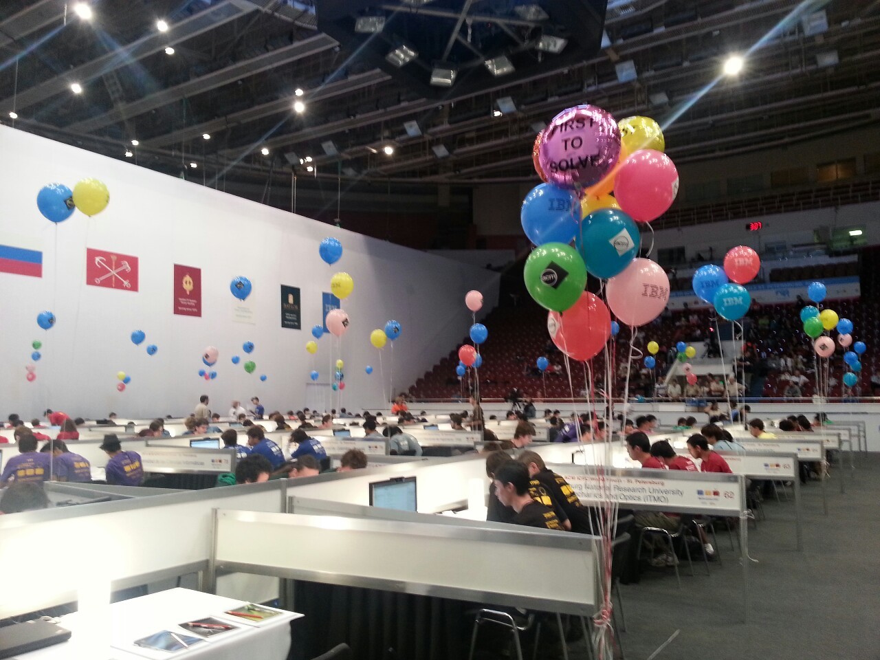 Defending champion and host ITMO (center) have amassed the largest bouquet of balloons. The team has answered 8 out of 11 problems correctly.