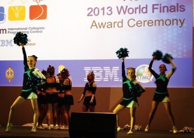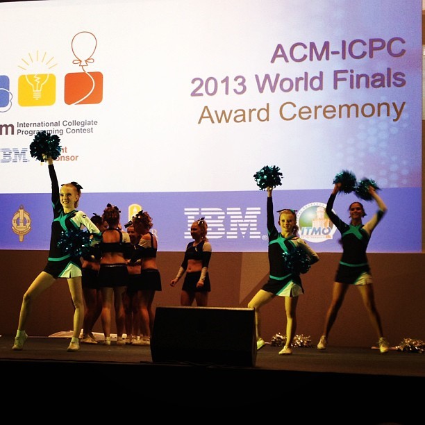 Russian cheerleaders open the celebration for the closing of the World Finals in St. Petersburg. (at Jubilee Sports Palace – St. Petersburg)