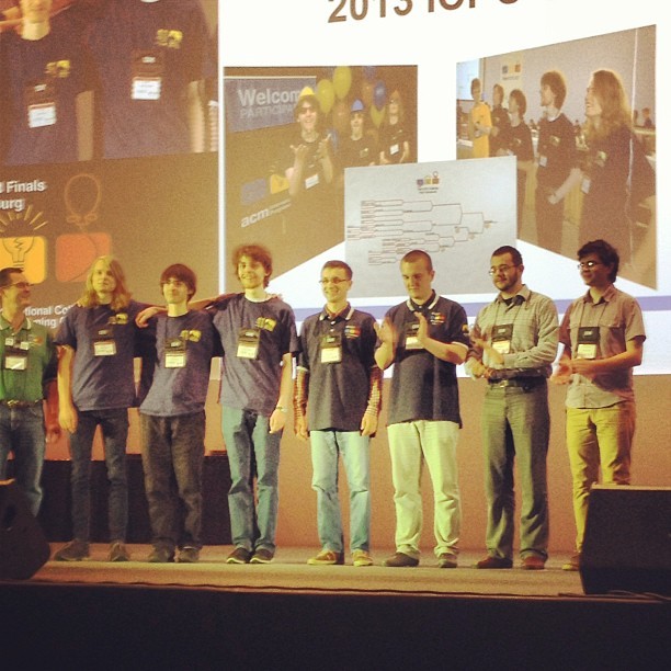 The ICPC Challenge winners take the stage at the awards ceremony at the Jubilee Sports Palace. Congratulations! (at Jubilee Sports Palace – St. Petersburg)