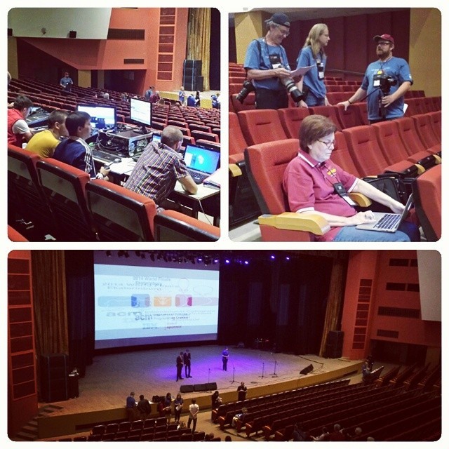 The #ICPC2014 Opening Ceremony is tomorrow at the Cosmos. That means today we need to practice! Checking lighting, staging, video and placement of every detail at the dress rehearsal. (at Cosmos)