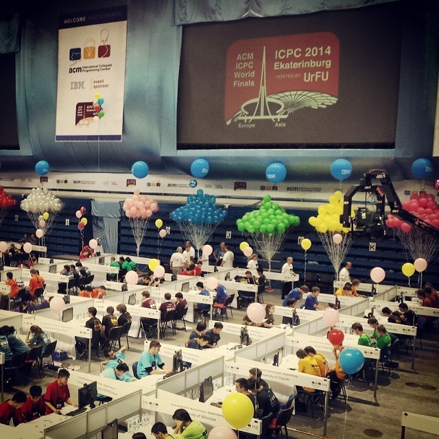 The view from above. All 122 teams have been hard at work the past two hours. Who will be the #ICPC2014 World Finals champion this year? (at ICPC 2014 World Finals Contest Arena)